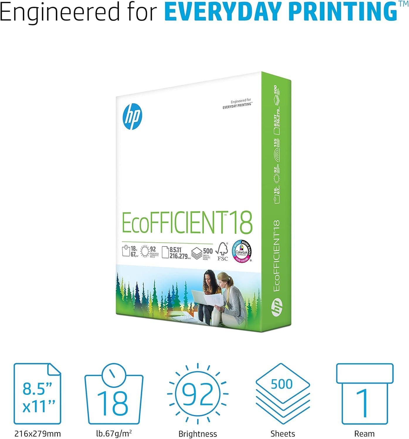 HP Printer Paper | 8.5 x 11 Paper | EcoFFICIENT 18 lb | 3 Ream Case - 1500 Sheets | 92 Bright | Made in USA - FSC Certified | 088400C(500 Count (Pack of 1))
